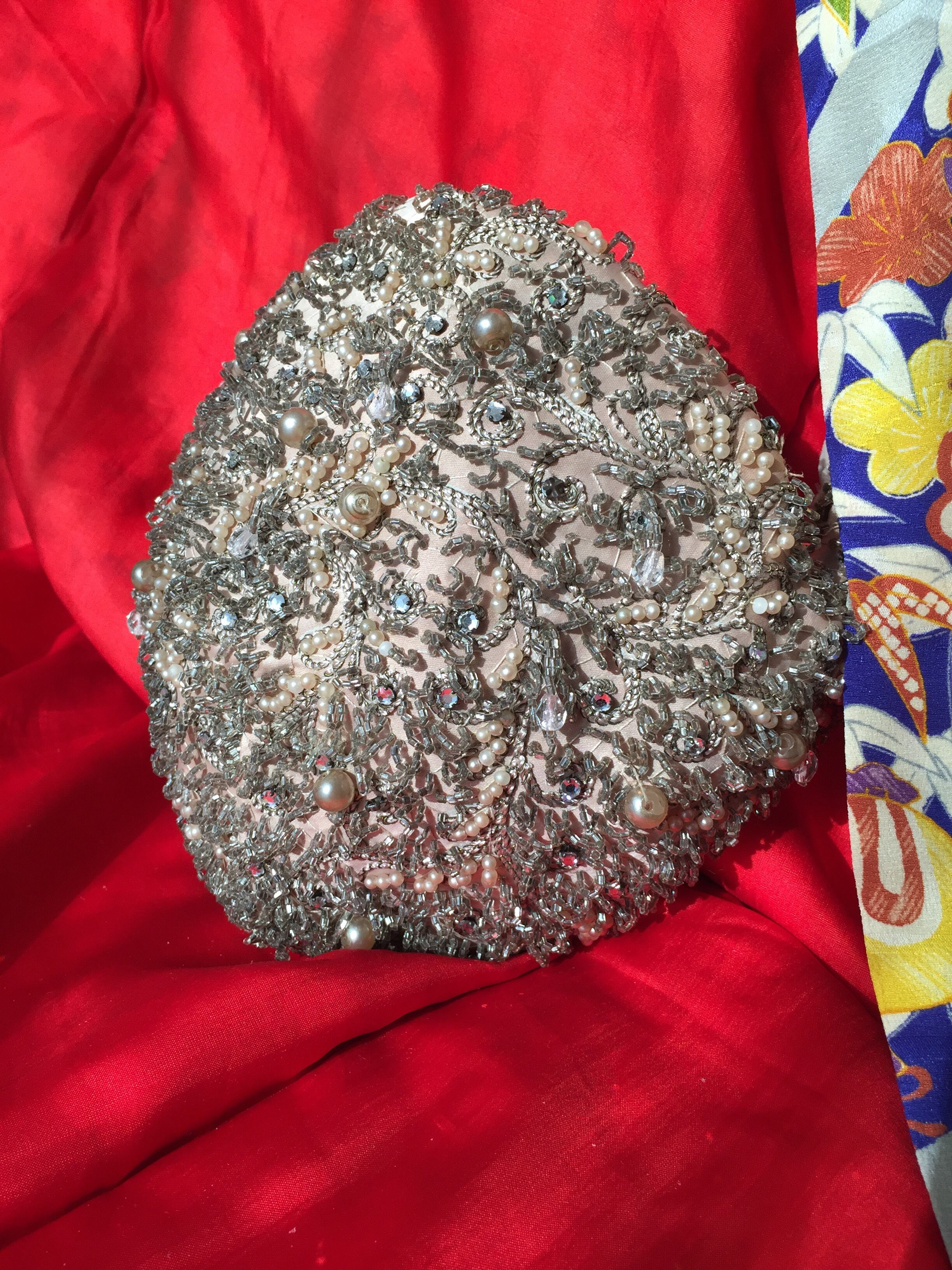 ◆素材:(土台)サテン、ガラスビーズ、フェイクパール、ビジュー、(内側)グログランテープでトリミング、他
