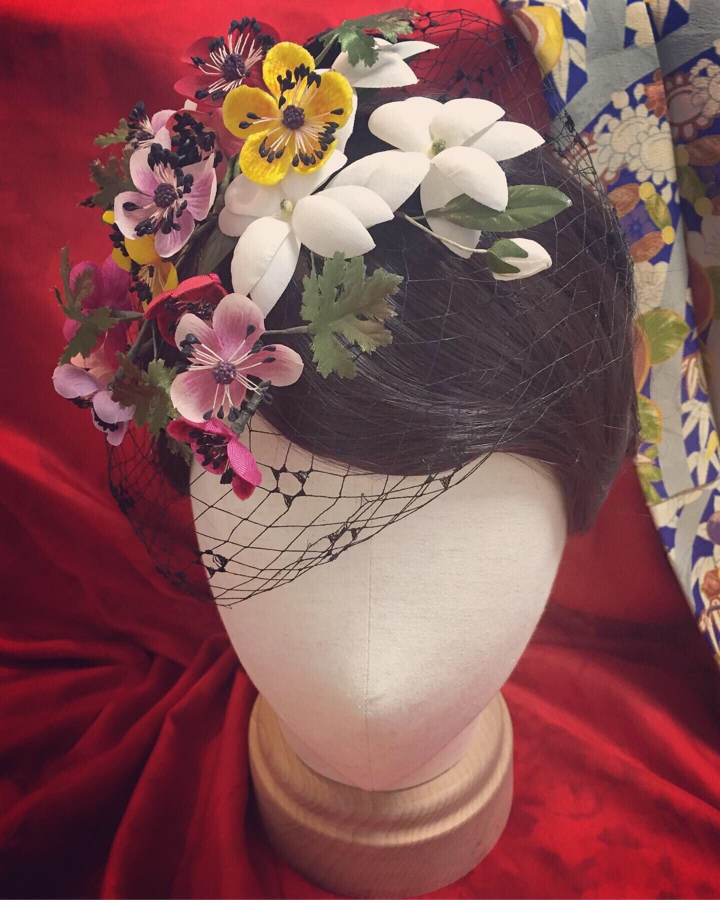 ◆素材:(お花)ベルベット他、ワイヤー、(リボン)ベルベット、チュール、他